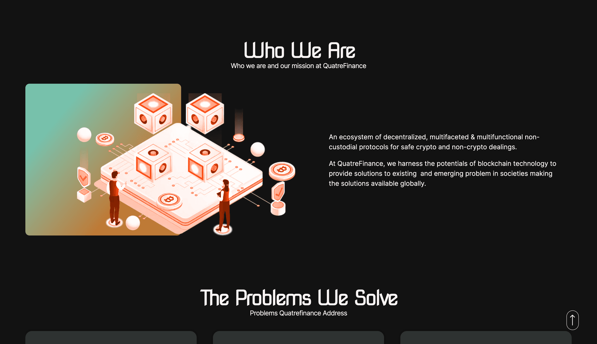 At Quatre Finance, we leverage blockchain technology to create innovative financial solutions, making decentralized finance more accessible and efficient. Our mission is to redefine traditional borrowing and lending practices through transparency, security, and inclusivity.