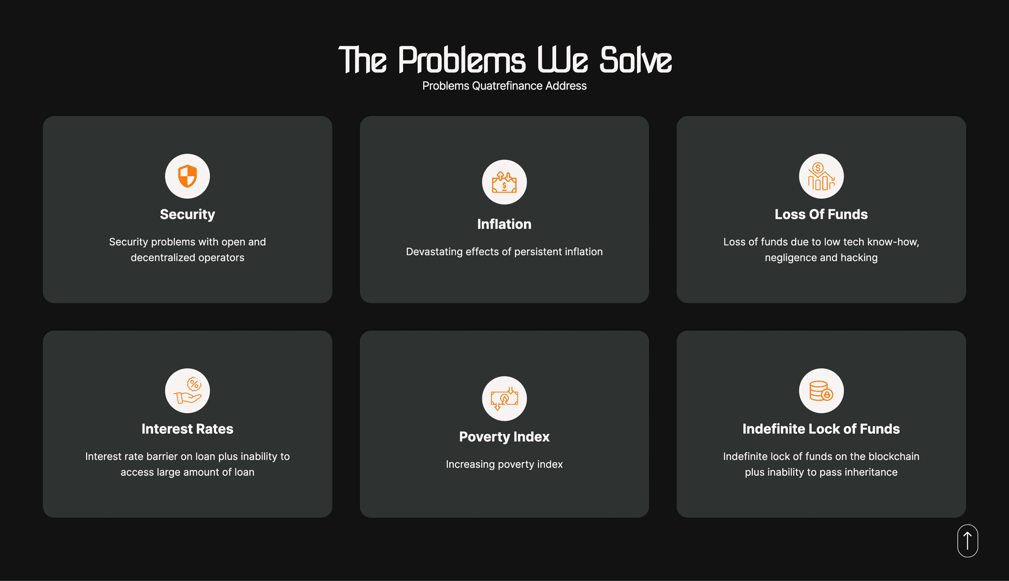 At Quatre Finance, we leverage blockchain technology to create innovative financial solutions, making decentralized finance more accessible and efficient. Our mission is to redefine traditional borrowing and lending practices through transparency, security, and inclusivity.